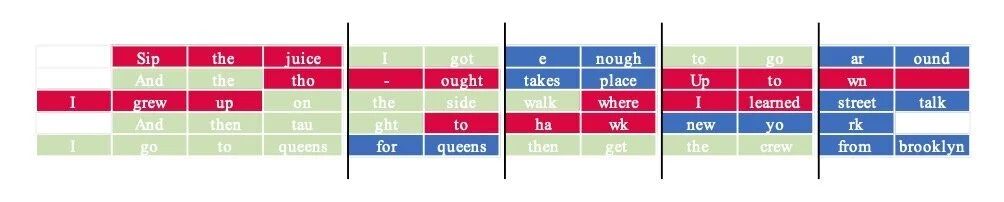 Patterns are all around us. Some obvious, others subtle but always with the elements repeating in a recurring manner. They can appear in, ascending, descending, geometrical and additive orders if we are operating in a mathematical domain. The patterns that are of interest though are the subtle ones, which are not always visual but are noticed only through our auditory or cognitive senses. The rap genre is particularly interesting because the verses can be simple with the ending word of a line in a verse rhyming with the previous line or they can be more complex with the use of comparison, alliteration and syncopation within the lines.