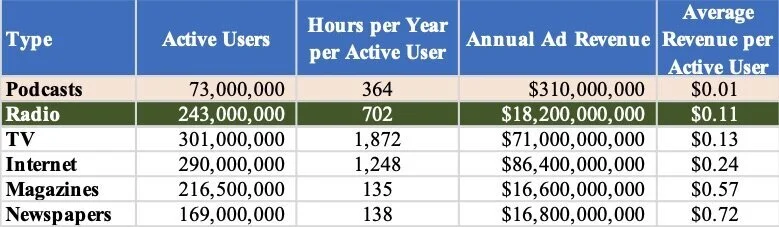[11] Ad Revenue per Active User - Reference: Podcasting & Audio Market Map – Lin Jin, Bernett Carroccoio, and Avery Segal